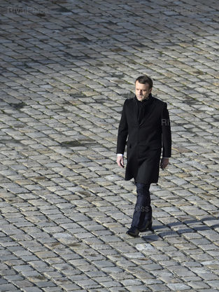 Légende : Cérémonie d'hommage national à Jean d'Ormesson, présidée par Emmanuel Macron à l'Hôtel des Invalides. Emmanuel Macron et Florence Parly, ministre des Armées /// National tribute ceremony to Jean d'Ormesson chaired by Emmanuel Macron at the Hôtel des Invalides. Emmanuel Macron and Florence Parly, Minister of the Armed Forces - Paris - 08/12/2017 - Photo © Lionel Préau +33 (0)6 68 12 83 77