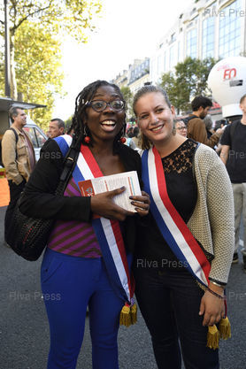 Légende : Manifestation contre la réforme du code du travail par ordonnances, à l'appel des syndicats CGT, Solidaires et l'Unef. Danièle Obono et Mathilde Panot, députées de La France Insoumise /// Demonstration against the labor law reform by order, called by the CGT, Solidaires and Unef trade unions. Danièle Obono and Mathilde Panot, Member of the Parliament of La France Insoumise - Paris - 21/09/2017 - Photo © Lionel Préau +33 (0)6 68 12 83 77