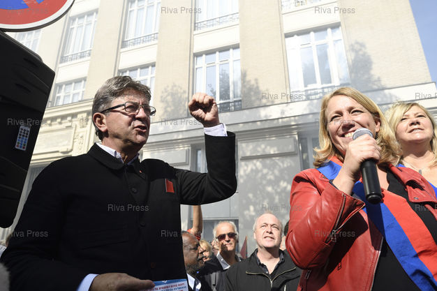 Caption : Manifestation contre la réforme du code du travail par ordonnances, à l'appel des syndicats CGT, Solidaires et l'Unef. Jean-Luc Mélenchon, député et président du groupe La Francf Insoumise - Danielle Simonnet /// Demonstration against the labor law reform by order, called by the CGT, Solidaires and Unef trade unions. Jean-Luc Mélenchon, Member of the Parliament and President of the La France Insoumise Group - Danielle Simonnet - Paris - 21/09/2017 - Photo © Lionel Préau +33 (0)6 68 12 83 77