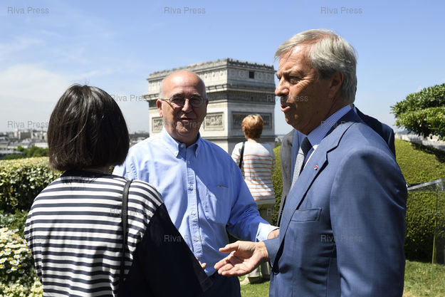 Caption : Remise du Prix Bretagne - Prix Breizh, qui couronne un romancier d'origine bretonne ou un récit concernant la Bretagne, au siège de Vivendi. Prix doté par le Groupe Bolloré. En présence de Bernard Poignant, et Vincent Bolloré, PDG du Groupe Bolloré, président du conseil de surveillance de Vivendi /// Prix Bretagne - Prix Breizh literary award, for a novelist of Breton origin or a story concerning the Bretagne, at the Vivendi headquarters. Prize supported by the Bollore Group. With Bernard Poignant, and Vincent Bollore, CEO of the Bolloré Group, Chairman of the Supervisory Board of Vivendi - Paris - 26/06/2017 - Photo © Lionel Préau +33 (0)6 68 12 83 77