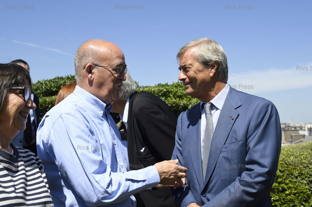 Légende : Remise du Prix Bretagne - Prix Breizh, qui couronne un romancier d'origine bretonne ou un récit concernant la Bretagne, au siège de Vivendi. Prix doté par le Groupe Bolloré. En présence de Bernard Poignant, et Vincent Bolloré, PDG du Groupe Bolloré, président du conseil de surveillance de Vivendi /// Prix Bretagne - Prix Breizh literary award, for a novelist of Breton origin or a story concerning the Bretagne, at the Vivendi headquarters. Prize supported by the Bollore Group. With Bernard Poignant, and Vincent Bollore, CEO of the Bolloré Group, Chairman of the Supervisory Board of Vivendi - Paris - 26/06/2017 - Photo © Lionel Préau +33 (0)6 68 12 83 77