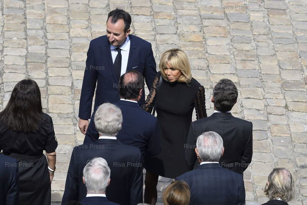 Légende : Cérémonie nationale d'hommage à Simone Veil - Cour d'Honneur de l'hôtel national des Invalides. Brigitte Macron salue François Hollande, entre Anne Hidalgo et Nicolas Sarkozy /// Ceremony of National tribute to Simone Veil - Courtyard of the Hotel national des Invalides. Brigitte Macron shakes hands with François Hollande, between Anne Hidalgo and Nicolas Sarkozy - Paris - 05/07/2017 - Photo © Lionel Préau +33 (0)6 68 12 83 77