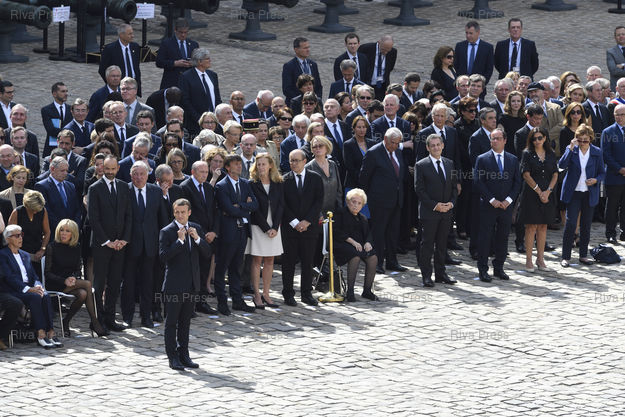 Légende : Cérémonie nationale d'hommage à Simone Veil - Cour d'Honneur de l'hôtel national des Invalides. Emmanuel Macron, devant Brigitte Macron, Edouard Philippe, Gérard Larcher, François de Rugy, Gérard Collomb, Nicolas Hulot, Nicole Belloubet, Jean-Yves Le Drian, Bernadette et Claude Chirac, Nicolas Sarkozy, François Hollande, Anne Hidalgo, Edith Cresson /// Ceremony of National tribute to Simone Veil - Courtyard of the Hotel national des Invalides. Emmanuel Macron, in front of Brigitte Macron, Edouard Philippe, Gérard Larcher, François de Rugy, Gérard Collomb, Nicolas Hulot, Nicole Belloubet, Jean-Yves Le Drian, Bernadette and Claude Chirac, Nicolas Sarkozy, François Hollande, Anne Hidalgo, Edith Cresson - Paris - 05/07/2017 - Photo © Lionel Préau +33 (0)6 68 12 83 77