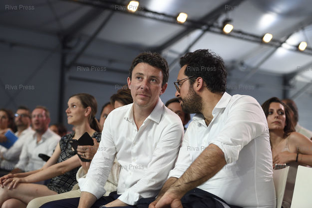 Légende : Première convention de La République en marche ! depuis l'accession de son fondateur à l'Elysée. Le mouvement propose de nouveaux statuts et présente sa feuille de route - Paris Event Center. Benjamin Griveaux, secrétaire d'Etat auprès du ministre de l'Economie et des Finances - Mounir Mahjoubi, secrétaires d'Etat chargé du Numérique /// First Convention of La République en marche ! since the accession of its founder to the Elysee. The movement is proposing new statutes and presents its roadmap - Paris Event Center. Benjamin Griveaux, Junior Minister attached to the Minister of Economy and Finance - Mounir Mahjoubi, Junior Minister in charge of Digital - Paris - 08/07/2017 - Photo © Lionel Préau +33 (0)6 68 12 83 77