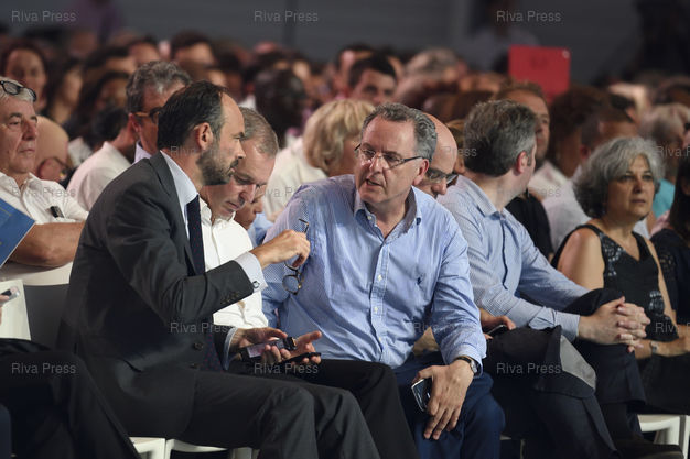 Légende : Première convention de La République en marche ! depuis l'accession de son fondateur à l'Elysée. Le mouvement propose de nouveaux statuts et présente sa feuille de route - Paris Event Center. Edouard Philippe, premier ministre - François de Rugy, président de l'Asqsemblée nationale - Richard Ferrand, président du groupe LREM à l'Assemblée nationale /// First Convention of La République en marche ! since the accession of its founder to the Elysee. The movement is proposing new statutes and presents its roadmap - Paris Event Center. Edouard Philippe, Prime Minister - François de Rugy, President of the National Assembly - Richard Ferrand, President of the LREM Group at the National Assembly - Paris - 08/07/2017 - Photo © Lionel Préau +33 (0)6 68 12 83 77