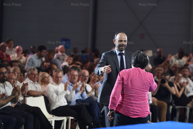 Légende : Première convention de La République en marche ! depuis l'accession de son fondateur à l'Elysée. Le mouvement propose de nouveaux statuts et présente sa feuille de route - Paris Event Center. Edouard Philippe, premier ministre - Catherine Barbaroux, présidente du mouvement /// First Convention of La République en marche ! since the accession of its founder to the Elysee. The movement is proposing new statutes and presents its roadmap - Paris Event Center. Edouard Philippe, Prime Minister - Catherine Barbaroux, President of the movement - Paris - 08/07/2017 - Photo © Lionel Préau +33 (0)6 68 12 83 77