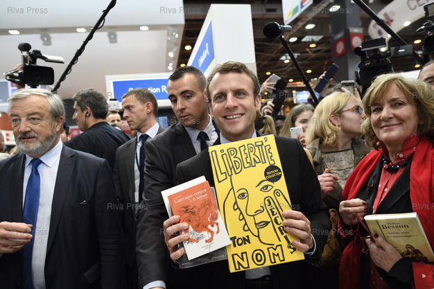 Caption : Emmanuel Macron, candidat du mouvement "En marche !" à l'élection présidentielle, visite le Salon du Livre - Porte de Versailles /// Emmanuel Macron, candidate of the movement "En Marche !" to the presidential election, visite the Book Fair - Porte de Versailles - Paris - 24/03/2017 - Photo © Lionel Préau +33 (0)6 68 12 83 77