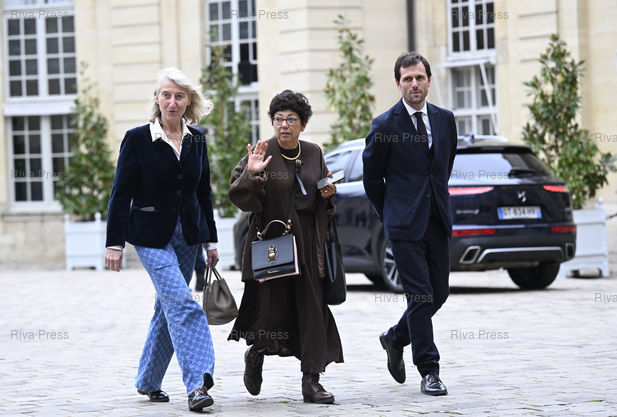 Légende : Réunion de travail du nouveau Premier ministre Sébastien Lecornu avec les membres de son gouvernement, au lendemain de leur nomination. Catherine Chabaud, ministre déléguée chargée de la mer et de la pêche - Monique Barbut, ministre de la transition écologique, de la biodiversité et des négociations internationales sur le climat et la nature - Mathieu Lefevre, ministre délégué chargé de la transition écologique /// Working meeting between the new Prime Minister Sébastien Lecornu and members of his government, the day after their appointment. Catherine Chabaud, Minister Delegate for the Sea and Fisheries - Monique Barbut, Minister of Ecological Transition, Biodiversity and International Negotiations on Climate and Nature - Mathieu Lefevre, Minister Delegate for Ecological Transition - Paris - 13/10/2025 - Photo © Lionel Préau +33 (0)6 68 12 83 77