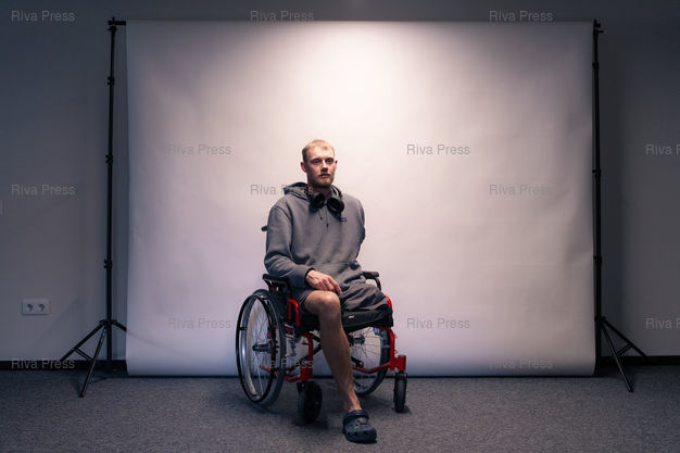 Légende : Eddy est l'un des rares etrangers en reeducation au centre Superhumans, et l'un des quelques civils parmi les innombrables veterans. Le 30 janvier 2025, il conduisait une camionnette d'evacuation de civils - clairement identifiee comme telle - lorsqu'elle a ete attaquee par un drone kamikaze russe. Il fut ampute du bras et de la jambe gauches. A son reveil du coma, il plaisante : "I guess now I'm all right". Finance par des donateurs ukrainiens et etrangers, le centre Superhumans est specialise dans la chirurgie reconstructive et les protheses. Le centre a deja pris en charge plus de 1000 civils et veterans blesses au cours de la guerre declenchee par la Russie en fevrier 2022. Lviv, Ukraine, le 10 mai 2025. Teo Manisier / Riva-Press /// Eddy is one of the few foreigners undergoing rehabilitation at the Superhumans center, and one of the few civilians among countless veterans. On January 30, 2025, he was driving a civilian evacuation van--clearly marked as such--when it was attacked by a Russian kamikaze drone. He lost his left arm and leg. When he woke up from a coma, he joked, "I guess now I'm all right." Funded by Ukrainian and foreign donors, the Superhumans center specializes in reconstructive surgery and prosthetics. The center has already treated more than 1,000 civilians and veterans wounded during the war started by Russia in February 2022. Lviv, Ukraine, May 10, 2025. Teo Manisier / Riva-Press