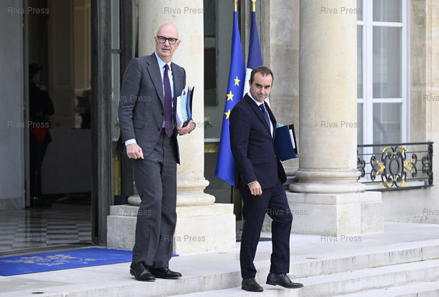 Légende : Premier Conseil des ministres du gouvernement Lecornu au palais de l'Elysée. Roland Lescure, ministre de l'économie, des finances et de la souveraineté industrielle, énergétique et numérique - Sébastien Lecornu, premier ministre /// First Council of ministers of the Lecornu government at the Elysee Palace. Roland Lescure, Minister of the Economy, Finance and Industrial, Energy and Digital Sovereignty - Sébastien Lecornu, French prime minister - Paris - 14/10/2025 - Photo © Lionel Préau +33 (0)6 68 12 83 77