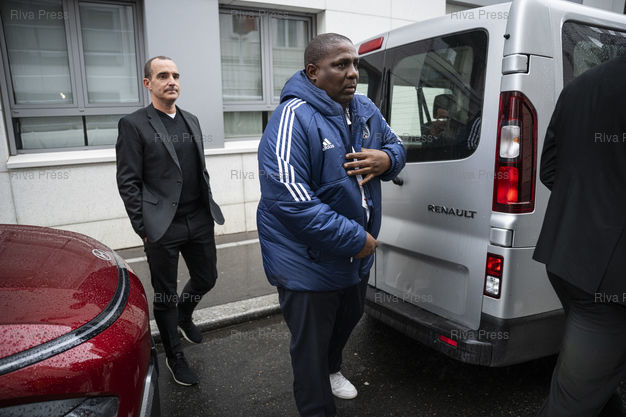 Légende : Benoit Millot, arbitre principal du match Paris FC-Lorient comptant pour la 7eme journee de Ligue 1, ses deux assistants et le quatrieme arbitre quittent leur hotel pour se rendre au stade Jean Bouin ou se deroule la rencontre, accompagne par le commissaire aux arbitres du PFC, Eddy Cellamen. A Boulogne-BIllancourt, le 03/10/2205 /// Benoit Millot, head referee for the Paris FC-Lorient match on Matchday 7 of French Ligue 1, his two assistants and the fourth referee leave their hotel to go to the Jean Bouin stadium where the match is taking place, accompanied by the PFC referees' commissioner, Eddy Cellamen. In Boulogne-Billancourt. On October 3, 2025 /// PHOTO VIncent Boisot
