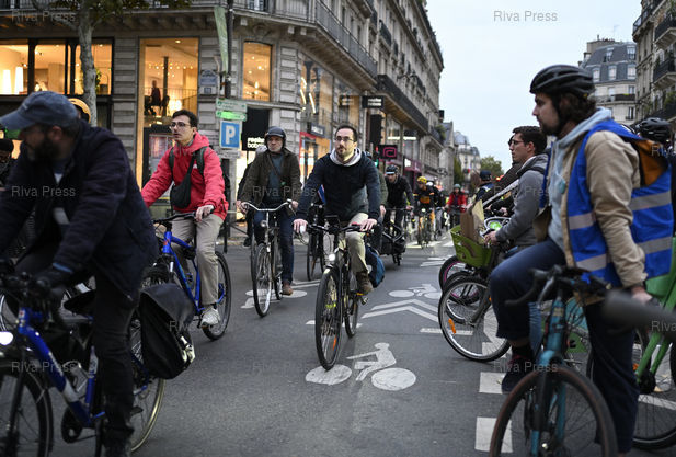 Légende : Rassemblement en la mémoire du cycliste Paul Varry, mortellement percuté par un automobiliste en SUV roulant sur une piste cyclable à la suite d'une altercation il y a un an à Paris. La Sécurité routière lance une campagne contre l'agressivité au volant /// Rally in memory of cyclist Paul Varry, fatally struck by a driver in an SUV driving on a cycle path following an altercation a year ago in Paris. Road safety launches a campaign against aggressive driving - Paris - 15/10/2025 - Photo © Lionel Préau +33 (0)6 68 12 83 77