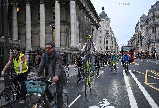 Légende : Rassemblement en la mémoire du cycliste Paul Varry, mortellement percuté par un automobiliste en SUV roulant sur une piste cyclable à la suite d'une altercation il y a un an à Paris. La Sécurité routière lance une campagne contre l'agressivité au volant /// Rally in memory of cyclist Paul Varry, fatally struck by a driver in an SUV driving on a cycle path following an altercation a year ago in Paris. Road safety launches a campaign against aggressive driving - Paris - 15/10/2025 - Photo © Lionel Préau +33 (0)6 68 12 83 77