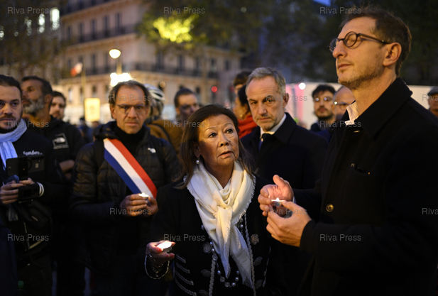 Légende : Rassemblement en la mémoire du cycliste Paul Varry, mortellement percuté par un automobiliste en SUV roulant sur une piste cyclable à la suite d'une altercation il y a un an à Paris. La Sécurité routière lance une campagne contre l'agressivité au volant. En présence de Jeanne d'Hauteserre, maire du 8e arrondissement, Emmanuel Grégoire, député et candidat à la Marie de Paris, Ariel Weil, maire de Paris-Centre /// Rally in memory of cyclist Paul Varry, fatally struck by a driver in an SUV driving on a cycle path following an altercation a year ago in Paris. Road safety launches a campaign against aggressive driving. With Jeanne d'Hauteserre, mayor of the 8th arrondissement, Emmanuel Grégoire, MP, candidate for Mayor of Paris, Ariel Weil, mayor of Paris-Centre - Paris - 15/10/2025 - Photo © Lionel Préau +33 (0)6 68 12 83 77