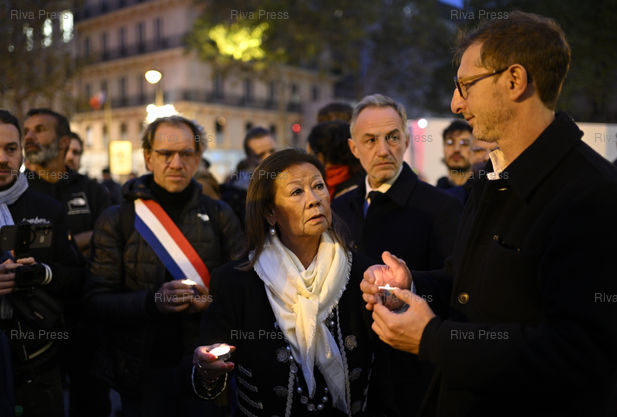 Légende : Rassemblement en la mémoire du cycliste Paul Varry, mortellement percuté par un automobiliste en SUV roulant sur une piste cyclable à la suite d'une altercation il y a un an à Paris. La Sécurité routière lance une campagne contre l'agressivité au volant. En présence de Jeanne d'Hauteserre, maire du 8e arrondissement, Emmanuel Grégoire, député et candidat à la Marie de Paris, Ariel Weil, maire de Paris-Centre /// Rally in memory of cyclist Paul Varry, fatally struck by a driver in an SUV driving on a cycle path following an altercation a year ago in Paris. Road safety launches a campaign against aggressive driving. With Jeanne d'Hauteserre, mayor of the 8th arrondissement, Emmanuel Grégoire, MP, candidate for Mayor of Paris, Ariel Weil, mayor of Paris-Centre - Paris - 15/10/2025 - Photo © Lionel Préau +33 (0)6 68 12 83 77