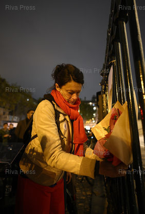 Légende : Rassemblement en la mémoire du cycliste Paul Varry, mortellement percuté par un automobiliste en SUV roulant sur une piste cyclable à la suite d'une altercation il y a un an à Paris. La Sécurité routière lance une campagne contre l'agressivité au volant. La mère de Paul Varry /// Rally in memory of cyclist Paul Varry, fatally struck by a driver in an SUV driving on a cycle path following an altercation a year ago in Paris. Road safety launches a campaign against aggressive driving. Paul Varry's mother - Paris - 15/10/2025 - Photo © Lionel Préau +33 (0)6 68 12 83 77