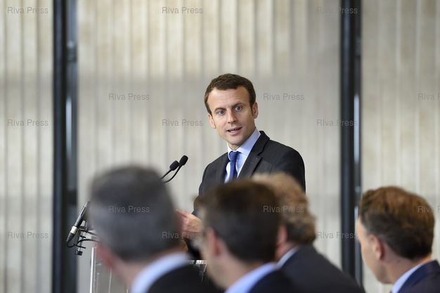 Légende : Emmanuel Macron, ministre de l'économie, de l'industrie et du numérique, lance le premier contrat d'assurance-vie " capital-investissement " en application de la loi pour la croissance, l'activité et l'égalité des chances économiques du 6 août 2015, et met en perspective ce nouveau produit avec les actions du Gouvernement en faveur de la mobilisation de l'épargne des Français au service du financement des entreprises - Paris - 05/07/2016 - Photo © Lionel Préau +33 (0)6 68 12 83 77