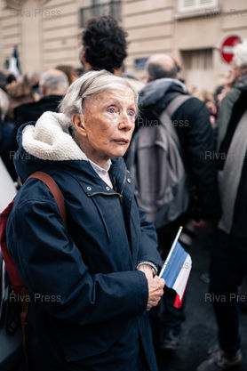 Légende : Des sympathisants de Nicolas sarkozy peu avant que l'ancien President de la Republique sorte de son domicile du 16e arrondissement de Paris pour aller rejoindre la prison de la Sante dans le 14e arrondissement, ou il est incarcere le mardi 21 octobre, presque un mois après sa condamnation pour association de malfaiteurs dans l'affaire des soupçons de financement libyen de sa campagne présidentielle en 2007.