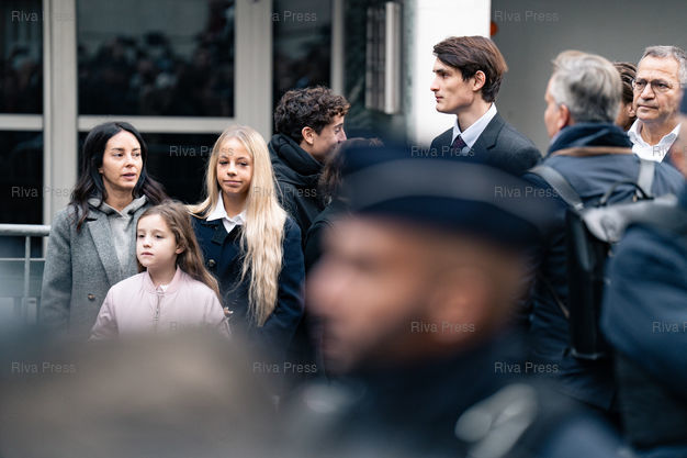 Légende : La famille et les proches de Nicolas Sarkozy peu avant que l'ancien President de la Republique sorte de son domicile du 16e arrondissement de Paris pour aller rejoindre la prison de la Sante dans le 14e arrondissement ou il est incarcere, presque un mois après sa condamnation pour association de malfaiteurs dans l'affaire des soupçons de financement libyen de sa campagne présidentielle en 2007.