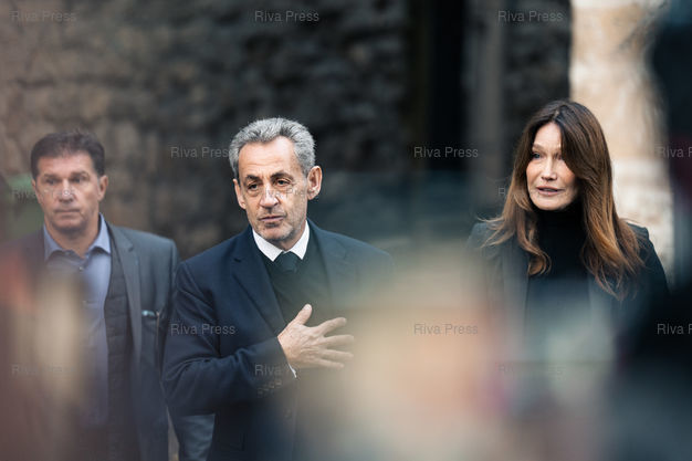 Légende : Nicolas Sarkozy et Carla Bruni sortent de leur domicile du 16e arrondissement de Paris alors que l'ancien President de la Republique se rend a la prison de la Sante dans le 14e arrondissement ou il est incarcere le mardi 21 octobre, presque un mois après sa condamnation pour association de malfaiteurs dans l'affaire des soupçons de financement libyen de sa campagne présidentielle en 2007.