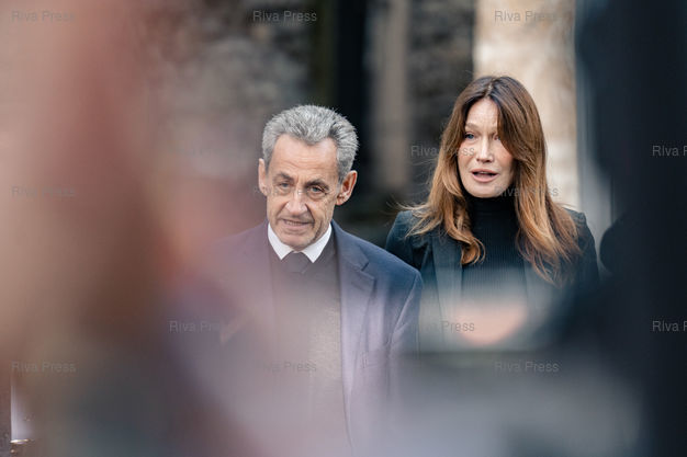 Légende : Nicolas Sarkozy et Carla Bruni sortent de leur domicile du 16e arrondissement de Paris alors que l'ancien President de la Republique se rend a la prison de la Sante dans le 14e arrondissement ou il est incarcere le mardi 21 octobre, presque un mois après sa condamnation pour association de malfaiteurs dans l'affaire des soupçons de financement libyen de sa campagne présidentielle en 2007.