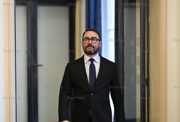 Légende : Le Rassemblement national présente son contre-budget pour le projet de loi de finances - PLF 2026. Victor Chabert, attaché de presse du RN /// The Rssemblement National party presents its counter-budget for the draft finance bill 2026. Victor Chabert, press officer of the RN - Paris - 23/10/2025 - Photo © Lionel Préau +33 (0)6 68 12 83 77