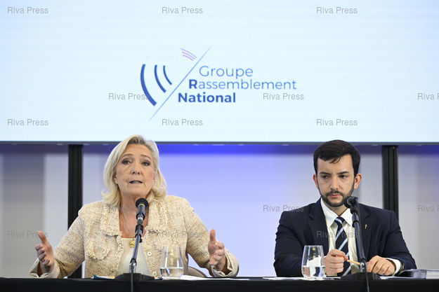 Mots-clés : 2025, budget, Conference de presse, Far right, jean philippe tanguy, Le Pen, Marine Le Pen, Paris, plf, rassemblement national, rn, tanguy