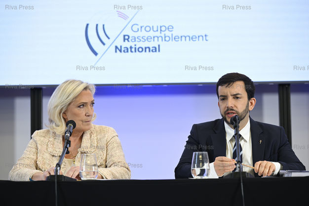 Mots-clés : 2025, budget, Conference de presse, Far right, jean philippe tanguy, Le Pen, Marine Le Pen, Paris, plf, rassemblement national, rn, tanguy