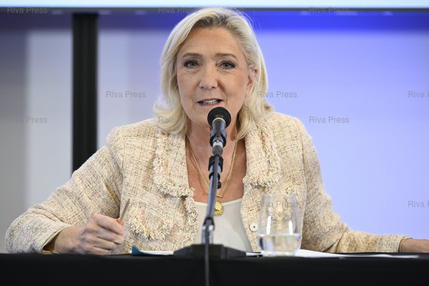 Légende : Le Rassemblement national présente son contre-budget pour le projet de loi de finances - PLF 2026. Marine Le Pen, présidente du groupe RN à l'Assemblée nationale /// The Rssemblement National party presents its counter-budget for the draft finance bill 2026. Marine Le Pen, president of the RN group in the National Assembly - Paris - 23/10/2025 - Photo © Lionel Préau +33 (0)6 68 12 83 77