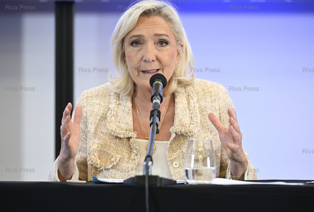 Légende : Le Rassemblement national présente son contre-budget pour le projet de loi de finances - PLF 2026. Marine Le Pen, présidente du groupe RN à l'Assemblée nationale /// The Rssemblement National party presents its counter-budget for the draft finance bill 2026. Marine Le Pen, president of the RN group in the National Assembly - Paris - 23/10/2025 - Photo © Lionel Préau +33 (0)6 68 12 83 77