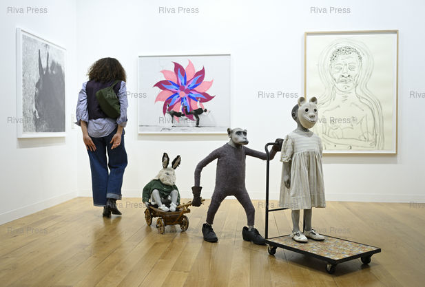 Légende : Foire d'art contemporain Art Basel Paris 2025 au Grand Palais. Jane Alexander, street cadets with harbinger : wish, walk/Loop, Long, 2000 /// Art Basel Paris 2025 contemporary art fair at the Grand Palais. Jane Alexander, street cadets with harbinger : wish, walk/Loop, Long, 2000 - Paris - 23/10/2025 - Photo © Lionel Préau +33 (0)6 68 12 83 77