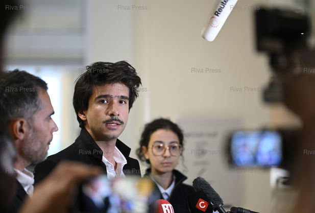 Légende : Procès pour cyberharcèlement sexiste à l'encontre de Brigitte Macron. Les prévenus avaient relayé sur les réseaux sociaux la fausse information selon laquelle la première dame est une femme transgenre. Le prévenu Aurélien Poirson-Atlan, alias "Zoé Sagan" et son avocat Juan Branco /// Trial for sexist cyberbullying against Brigitte Macron. The defendants had shared false information on social media that the first lady was a transgender woman. The defendant Aurélien Poirson-Atlan, alias "Zoé Sagan" and lawyer Juan Branco - Paris - 28/10/2025 - Photo © Lionel Préau +33 (0)6 68 12 83 77