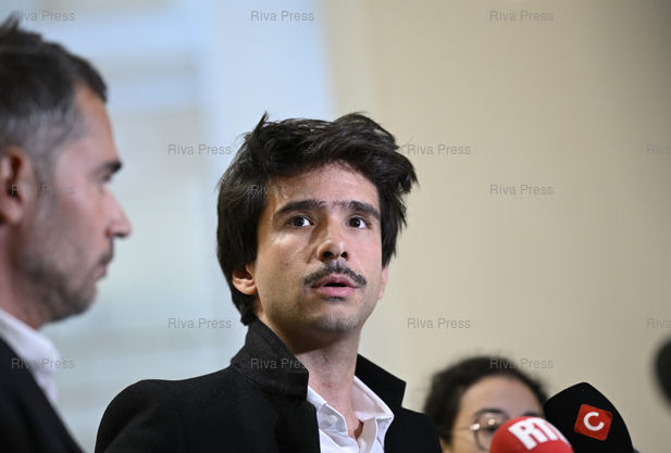 Caption : Procès pour cyberharcèlement sexiste à l'encontre de Brigitte Macron. Les prévenus avaient relayé sur les réseaux sociaux la fausse information selon laquelle la première dame est une femme transgenre. Le prévenu Aurélien Poirson-Atlan, alias "Zoé Sagan" et son avocat Juan Branco /// Trial for sexist cyberbullying against Brigitte Macron. The defendants had shared false information on social media that the first lady was a transgender woman. The defendant Aurélien Poirson-Atlan, alias "Zoé Sagan" and lawyer Juan Branco - Paris - 28/10/2025 - Photo © Lionel Préau +33 (0)6 68 12 83 77