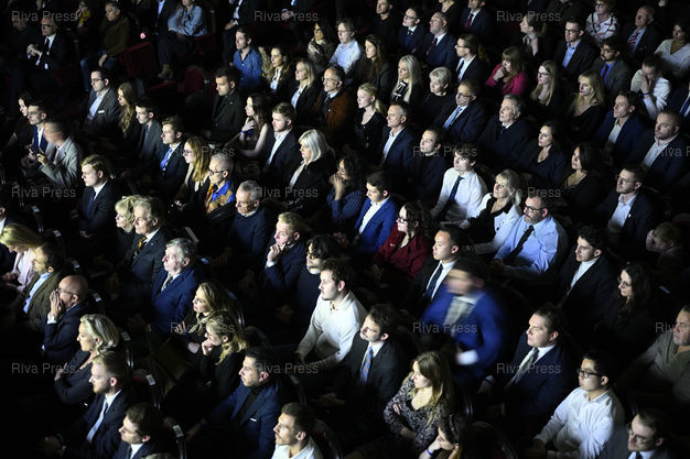 Légende : Jordan Bardella, président du Rassemblement national, lance son 2eme livre "Ce que veulent les Français" lors d'une soirée au Théâtre Marigny. Public, avec au 1er rang Eric Ciotti et Marine le Pen /// Jordan Bardella, president of the Rassemblement National, launches his 2nd book "What the French want" during an evening at the Théâtre Marigny. Public, with Eric Ciotti and Marine Le Pen in the front row - Paris - 28/10/2025 - Photo © Lionel Préau +33 (0)6 68 12 83 77