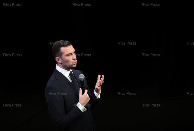 Légende : Jordan Bardella, président du Rassemblement national, lance son 2eme livre "Ce que veulent les Français" lors d'une soirée au Théâtre Marigny /// Jordan Bardella, president of the Rassemblement National, launches his 2nd book "What the French want" during an evening at the Théâtre Marigny - Paris - 28/10/2025 - Photo © Lionel Préau +33 (0)6 68 12 83 77