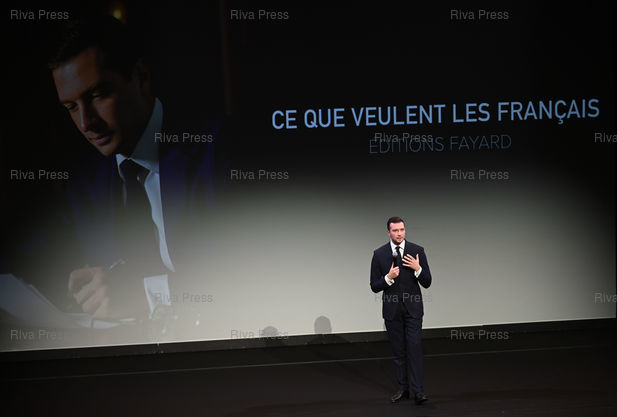 Légende : Jordan Bardella, président du Rassemblement national, lance son 2eme livre "Ce que veulent les Français" lors d'une soirée au Théâtre Marigny /// Jordan Bardella, president of the Rassemblement National, launches his 2nd book "What the French want" during an evening at the Théâtre Marigny - Paris - 28/10/2025 - Photo © Lionel Préau +33 (0)6 68 12 83 77
