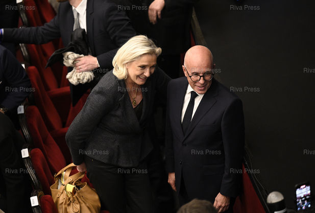 Légende : Jordan Bardella, président du Rassemblement national, lance son 2eme livre "Ce que veulent les Français" lors d'une soirée au Théâtre Marigny. Marine le Pen et Eric Ciotti /// Jordan Bardella, president of the Rassemblement National, launches his 2nd book "What the French want" during an evening at the Théâtre Marigny. Marine Le Pen and Eric Ciotti - Paris - 28/10/2025 - Photo © Lionel Préau +33 (0)6 68 12 83 77