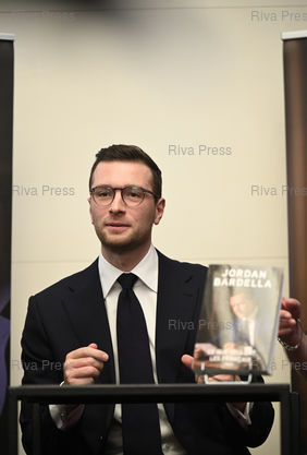 Légende : Jordan Bardella, président du Rassemblement national, lance son 2eme livre "Ce que veulent les Français" lors d'une soirée au Théâtre Marigny. Séance de dédicace /// Jordan Bardella, president of the Rassemblement National, launches his 2nd book "What the French want" during an evening at the Théâtre Marigny. Book signing session - Paris - 28/10/2025 - Photo © Lionel Préau +33 (0)6 68 12 83 77