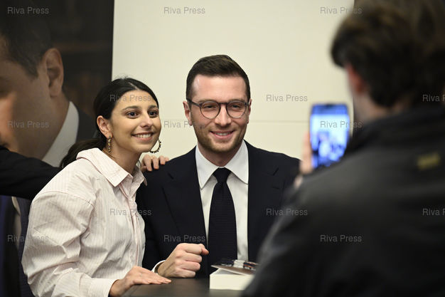 Légende : Jordan Bardella, président du Rassemblement national, lance son 2eme livre "Ce que veulent les Français" lors d'une soirée au Théâtre Marigny. Séance de dédicace /// Jordan Bardella, president of the Rassemblement National, launches his 2nd book "What the French want" during an evening at the Théâtre Marigny. Book signing session - Paris - 28/10/2025 - Photo © Lionel Préau +33 (0)6 68 12 83 77