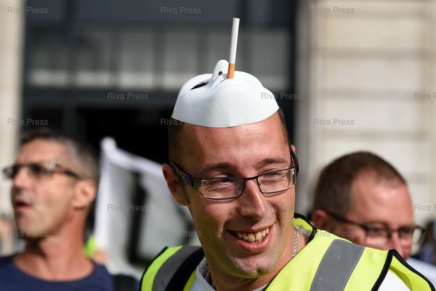 Légende : Des salariés en grève du cigarettier Seita manifestent, à l'appel de la CGT, contre le plan social de 366 suppressions d'emplois, de la Gare Saint-Lazare vers l'Assemblée Nationale - Paris - 22/09/2014 - Photo © Lionel Préau +33 (0)6 68 12 83 77