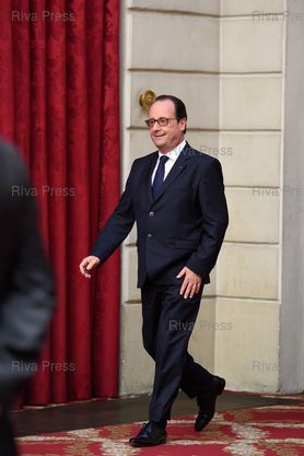 François Hollande pénètre dans le salon vert - Paris - 15/07/2014 - Photo © Lionel Préau +33 (0)6 68 12 83 77