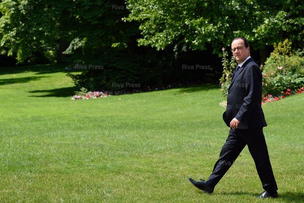 François Hollande dans les jardins de l'Elysée pour une photo de famille - Paris - 15/07/2014 - Photo © Lionel Préau +33 (0)6 68 12 83 77