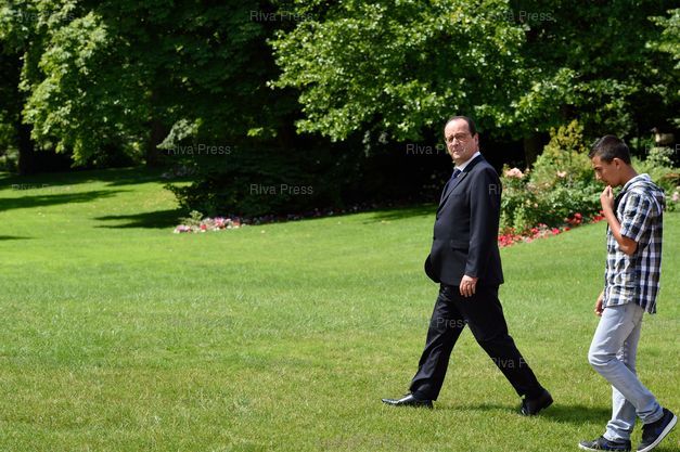 François Hollande dans les jardins de l'Elysée pour une photo de famille - Paris - 15/07/2014 - Photo © Lionel Préau +33 (0)6 68 12 83 77