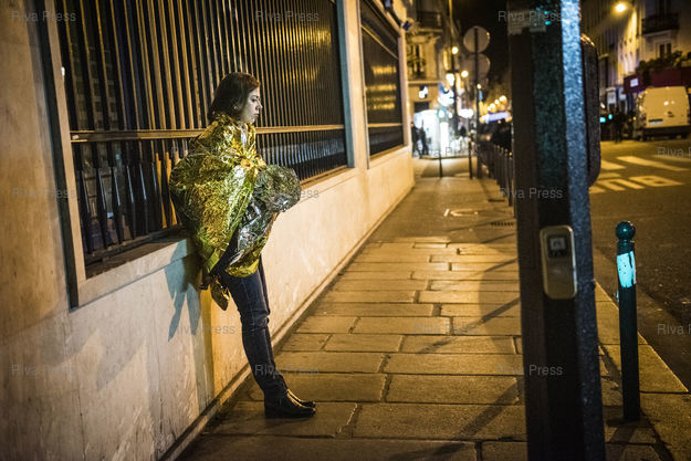 Légende : PARIS, 13/11/2015 - Des rescapes de l'attaque terroriste au Bataclan quittent les lieux au niveau du boulevard Voltaire apres que l'assaut a ete donne par les forces de l'ordre. /// Survivors of the terrorist attack at the Bataclan concert hall in the center of Paris leave the scene after the assault was given by the police. 90 persons were killed and hundreds injured in this attack. /// PHOTO Vincent BOISOT