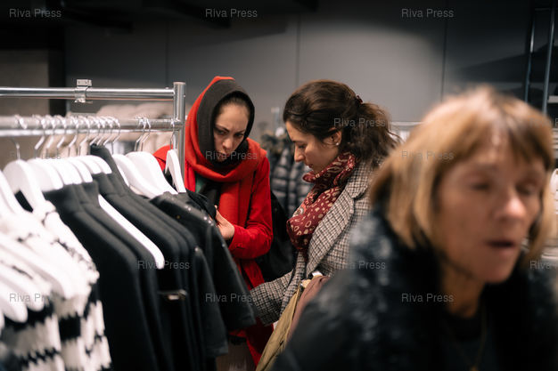 Caption : Des clients le jour de l'ouverture de la premiere boutique physique de la marque chinoise d'ultra fast fashion Shein, au BHV dans le Marais, dans le 6e arrondissement de Paris. Plusieurs centaines de clients se sont positionnes jusqu'a trois heures avant l'ouverture pour penetrer sur les plus de 1000m2 dedies au corner Shein, au 6e etage du celebre magasin parisien, malgre la presence de manifestants protestant contre les conditions de travail des employes de la marque, les consequences environnementales de son activite et les scandales des poupees pedopornographiques vendues sur son site. Paris, 5 novembre 2025. Teo Manisier / Riva Press. /// Customers on the day of the opening of the first physical store of the Chinese ultra-fast fashion brand Shein, at BHV in the Marais district of Paris's 6th arrondissement. Several hundred customers positioned themselves up to three hours before opening to enter the more than 1,000 square meters dedicated to the Shein corner on the 6th floor of the famous Parisian department store, despite the presence of protesters demonstrating against the working conditions of the brand's employees, the environmental consequences of its business, and the scandals involving child pornography dolls sold on its website. Paris, November 5, 2025. Teo Manisier / Riva Press. ///