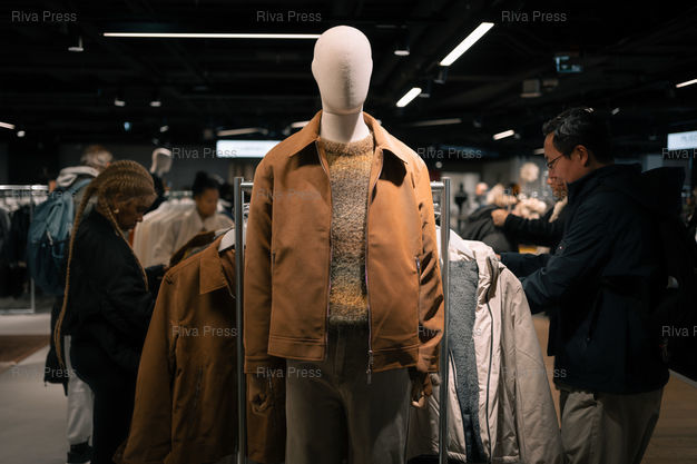 Légende : Des clients le jour de l'ouverture de la premiere boutique physique de la marque chinoise d'ultra fast fashion Shein, au BHV dans le Marais, dans le 6e arrondissement de Paris. Plusieurs centaines de clients se sont positionnes jusqu'a trois heures avant l'ouverture pour penetrer sur les plus de 1000m2 dedies au corner Shein, au 6e etage du celebre magasin parisien, malgre la presence de manifestants protestant contre les conditions de travail des employes de la marque, les consequences environnementales de son activite et les scandales des poupees pedopornographiques vendues sur son site. Paris, 5 novembre 2025. Teo Manisier / Riva Press. /// Customers on the day of the opening of the first physical store of the Chinese ultra-fast fashion brand Shein, at BHV in the Marais district of Paris's 6th arrondissement. Several hundred customers positioned themselves up to three hours before opening to enter the more than 1,000 square meters dedicated to the Shein corner on the 6th floor of the famous Parisian department store, despite the presence of protesters demonstrating against the working conditions of the brand's employees, the environmental consequences of its business, and the scandals involving child pornography dolls sold on its website. Paris, November 5, 2025. Teo Manisier / Riva Press. ///