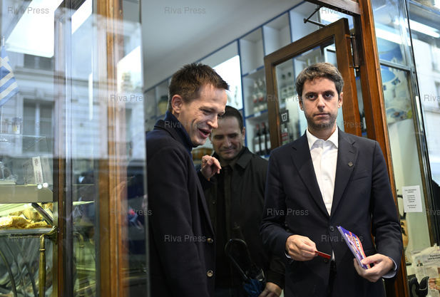 Légende : Gabriel Attal, Secrétaire général de Renaissance, et Pierre-Yves Bournazel, candidat à la mairie de Paris, rencontrent les commerçants et habitants du 18eme arrondissement /// Gabriel Attal, Secretary General of Renaissance, and Pierre-Yves Bournazel, candidate for mayor of Paris, meet with shopkeepers and residents of the 18th arrondissement - Paris - 08/11/2025 - Photo © Lionel Préau +33 (0)6 68 12 83 77