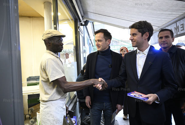 Légende : Gabriel Attal, Secrétaire général de Renaissance, et Pierre-Yves Bournazel, candidat à la mairie de Paris, rencontrent les commerçants et habitants du 18eme arrondissement /// Gabriel Attal, Secretary General of Renaissance, and Pierre-Yves Bournazel, candidate for mayor of Paris, meet with shopkeepers and residents of the 18th arrondissement - Paris - 08/11/2025 - Photo © Lionel Préau +33 (0)6 68 12 83 77