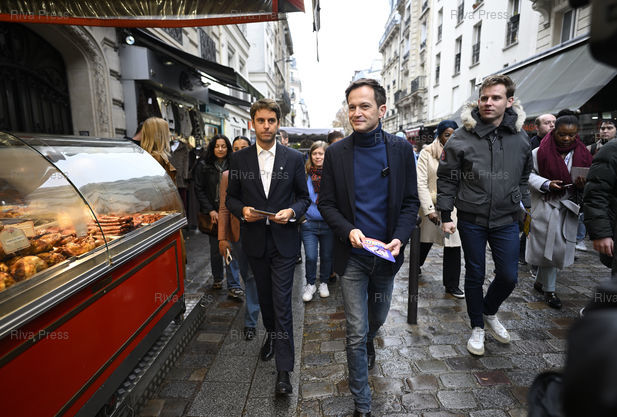 Légende : Gabriel Attal, Secrétaire général de Renaissance, et Pierre-Yves Bournazel, candidat à la mairie de Paris, rencontrent les commerçants et habitants du 18eme arrondissement /// Gabriel Attal, Secretary General of Renaissance, and Pierre-Yves Bournazel, candidate for mayor of Paris, meet with shopkeepers and residents of the 18th arrondissement - Paris - 08/11/2025 - Photo © Lionel Préau +33 (0)6 68 12 83 77