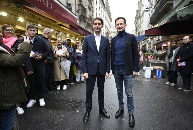 Légende : Gabriel Attal, Secrétaire général de Renaissance, et Pierre-Yves Bournazel, candidat à la mairie de Paris, rencontrent les commerçants et habitants du 18eme arrondissement /// Gabriel Attal, Secretary General of Renaissance, and Pierre-Yves Bournazel, candidate for mayor of Paris, meet with shopkeepers and residents of the 18th arrondissement - Paris - 08/11/2025 - Photo © Lionel Préau +33 (0)6 68 12 83 77